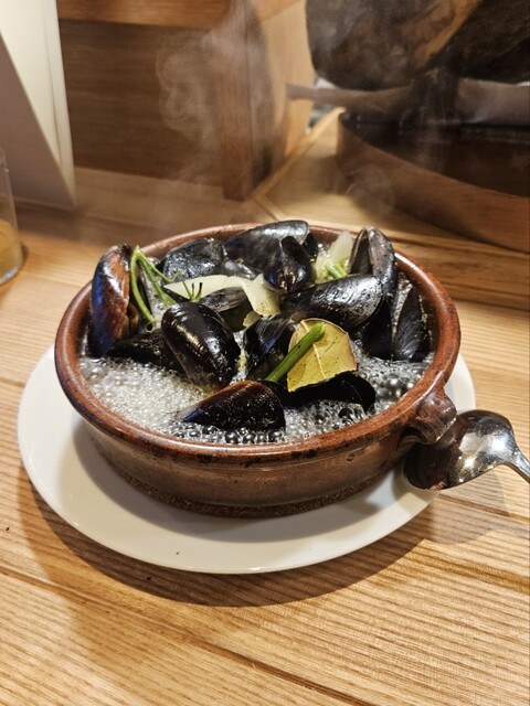本日のおすすめメニューから「石巻産ムール貝のシェリー酒蒸し」ムール貝の下処理ってめっちゃたいへんなので感謝して頂きます♪