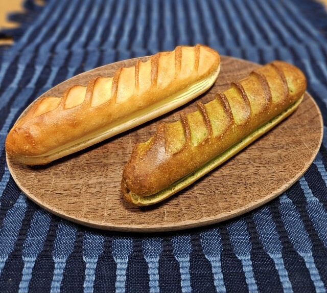 「ヴィエノワ」376円 左はクレーム オ ブール 右は抹茶 冷やして食べます!水分量多めのもっちりとした生地が最高!