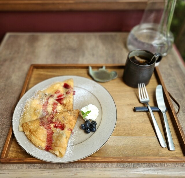 インスタを見て食べたかったイートインメニュー、「ブルーベリー×レアチーズケーキ」のクレープを頂きます♪