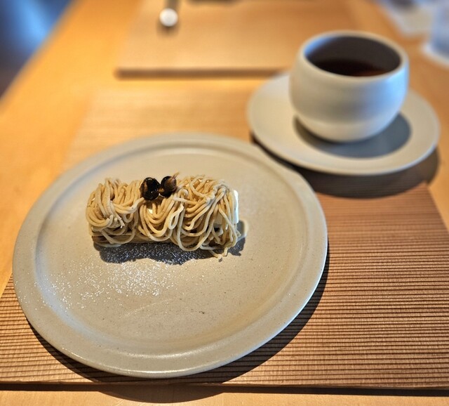 モンブラン仕立てのデザート。中央のキャラメリゼした黒豆が香ばしい