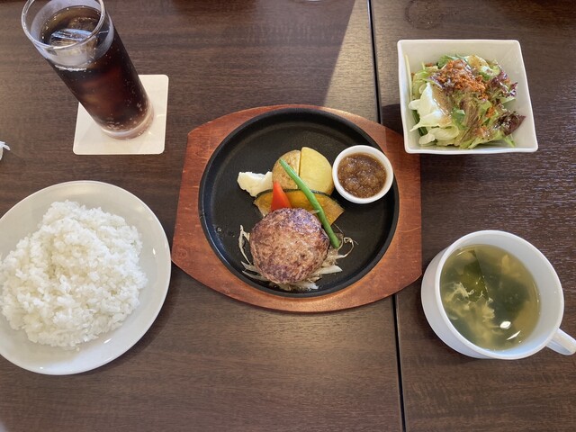 お肉が主役のランチを頂きました。80グラムのハンバーグとベーコン巻いてあるポークソテー、野菜の付け合わせも美味しい。ミニサラダにパンプキンとコーン入りポタージュスープ(コンソメとの2択)2種のパン(ラ...