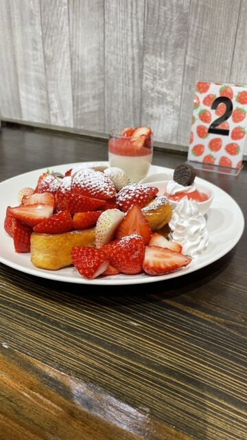 フレンチトーストプレートを注文しました。フレンチトーストの上にいちごの山脈ですね。いちご甘いですね。全てが美味しい!行く方は、予約が必須です。ご馳走さまでした。