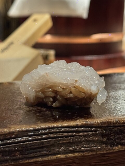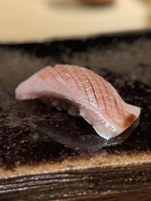 白海老の上品な甘みある握りからスタート。光り物は鯵でサッパリと、アオリイカは烏賊の王様。ねっとりとした旨味が口に広がります!寒くなり脂を蓄えたブリはやはり美味しい。珍しいヤガラは今が旬、脂がのって1番美味しい時期。伊勢海老は半生くらいの仕上げで甘みが更に際立っていました!カワハギの肝は今が旬で、海のフォアグラと言うべき濃厚な口当たり!鮪はやま幸さんから、東北の宝物ですね!1番美味しかったのがクロムツ。まさに旬で脂が乗ってて、皮を備長炭で焼いてくれますが、口に含んだ後も香りが立っていて絶品でした!