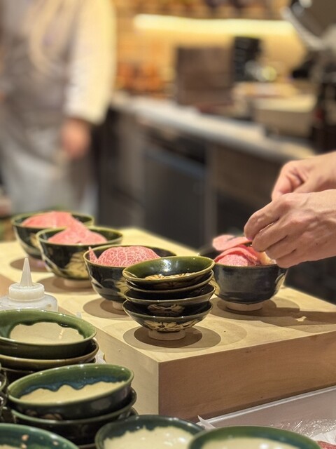 昔はお菓子を入れていたお椀の中には群馬県産の増田牛のもも肉がこんにちわ!美しいサシで濃厚な卵黄と合わせて食べると口の中でとろける!残った卵とタレにご飯を入れて食べる卵ご飯も絶品。