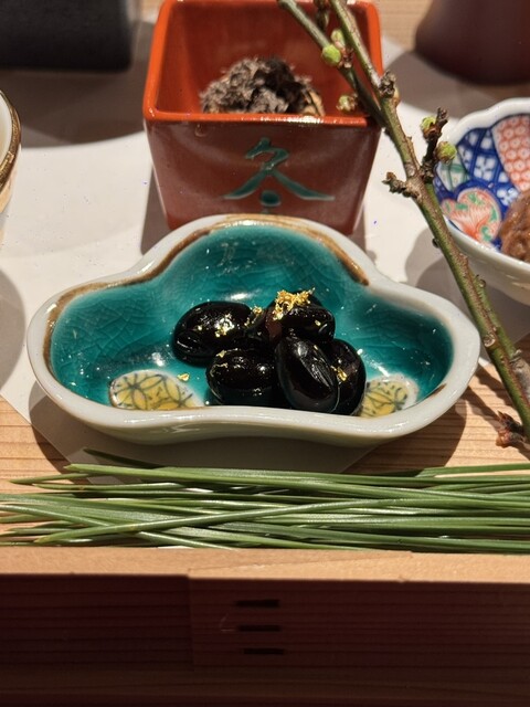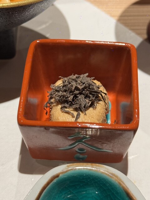 焼いた白子にはカラスミがかけられ、更にキャビアが乗せられている逸品。甘くて溶ける白子にカラスミの濃厚な味が溶け込み、最後にプチッと食感のキャビアが塩味も効かせてくれてナイスコンビネーション!