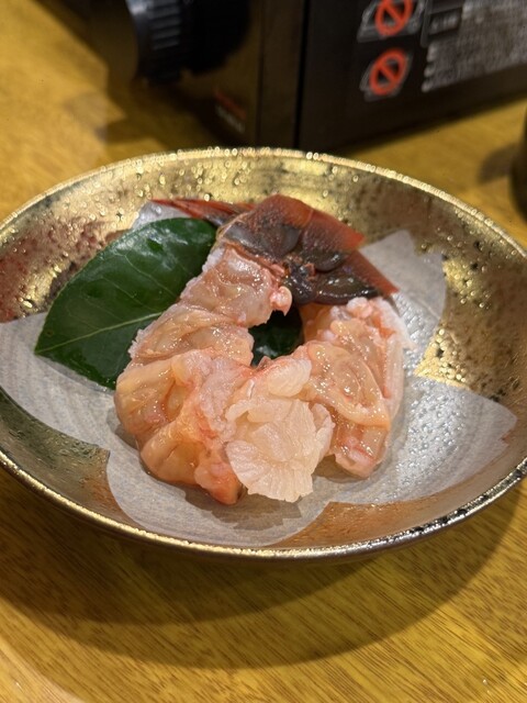 鮮やかな赤い体色が特徴の高級魚きんき。脂が乗って身のとろける感じが印象的。正面向けて1度顔を合わせてこんにちはしました!笑