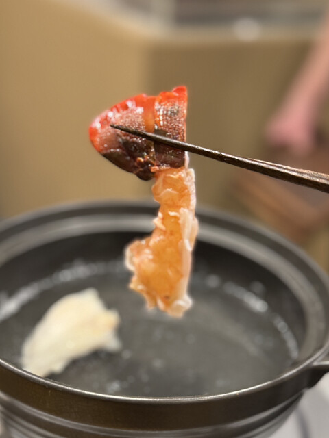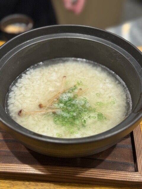 伊勢海老の河豚をしゃぶしゃぶしたお鍋の出汁にご飯を入れて再度運んでくれる〆のふぐ雑炊がめちゃくちゃ美味しい!きっとお米もいいお米で炊き方も良いと思われる美味しい雑炊でした!