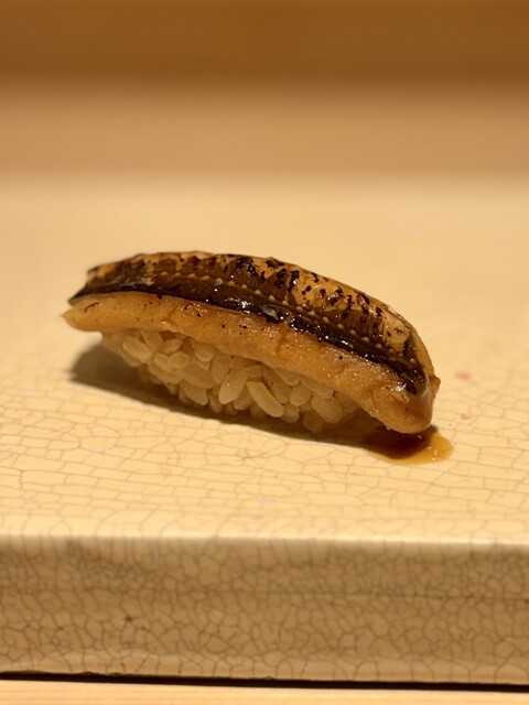 赤身漬けにもしっかりと柚子が乗せられ、後味が爽やか。縞鯵はこれでもかってくらいに綺麗な輝きで、口に含んでも存在感あり。今や高級な帆立も贅沢な大ぶり。そして何より北海道の馬糞雲丹がコースに更なる高級感ももたせてくれます!甘かったなぁ!