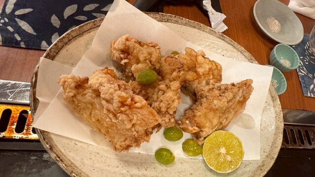 今回は、ママちゃんにお任せの"てっさ"に"フグの唐揚げ""フグの焼物"とフグのコースみたいでした!