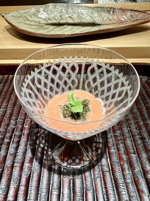 車海老の浅揚げ、貝柱、ブロッコリーに大満足しつつ、少し甘めの冷酒を頂く。