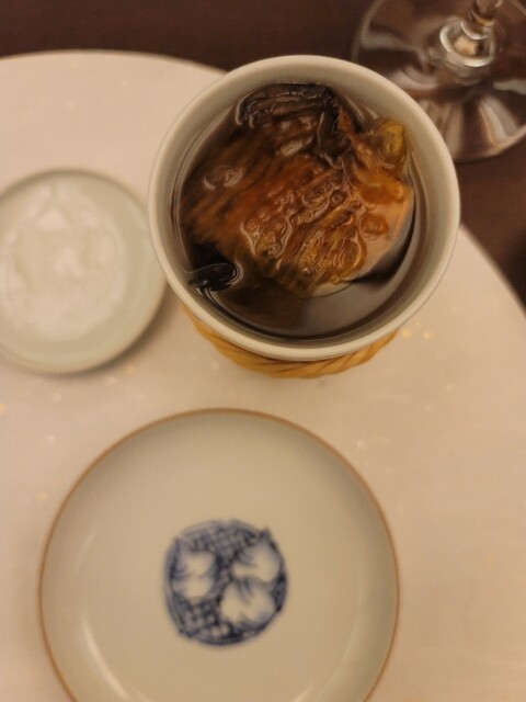 すっぽんの土瓶蒸し。出汁に引き算の美学をかんじました。すっぽんは本当に面白い味なのですよ。いかにもハチュー類の味がするんだけど(よくいわれるようにすっきりとした鶏肉のような)ぷるぷるコラーゲンがたくさんついていて、どうしてそんなにわかれてしまうんだろう~という感じがします。わたしは、すっぼんの首の部分が入っていたみたいで、とても嬉しかったです。