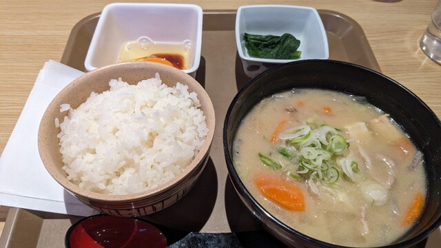 サービスエリアと言う事も有り他のメニューは割高な感じだけど、豚汁定食はここいちのコスパ。