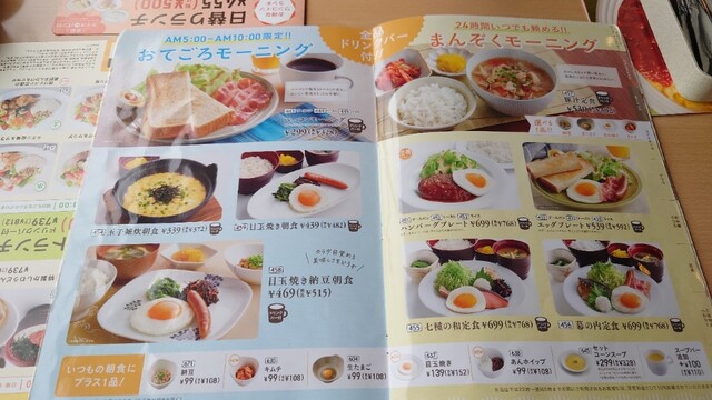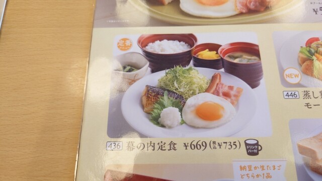 日替わりランチ500円から、1日中モーニングメニューとあります、ドリンクバーも安価格です。
