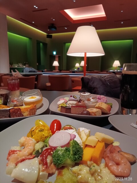 1人なのでカウンター席を13:30に予約してましたが、ランチが15時迄なのと空いていたので窓際の半円状の赤いソファー席に案内されました(やったー)店内は赤を基調としてとてもスタイリッシュでした。