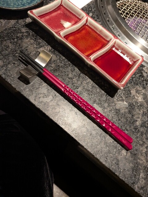 トレーにずらりと並んだ箸の中から好きな一本を選ぶスタイルで、まるで旅館で浴衣を選ぶ感覚。遊び心がありつつ、細部までこだわりを感じる演出に思わず笑みがこぼれる。今回は赤をチョイス。