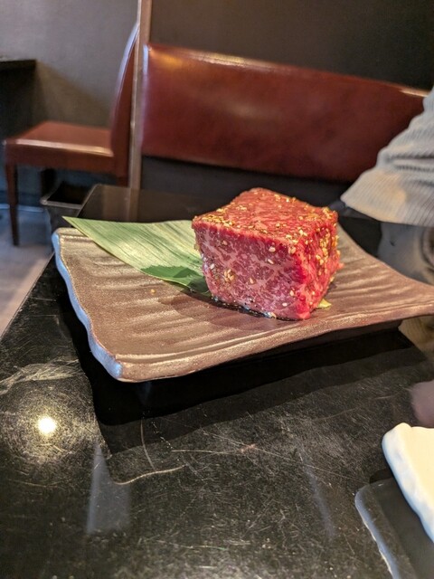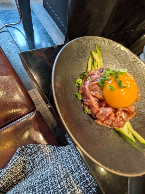 「ごぉの炙りユッケ」は、炙ることで香ばしさが増し、和牛の甘みがより鮮明に。
