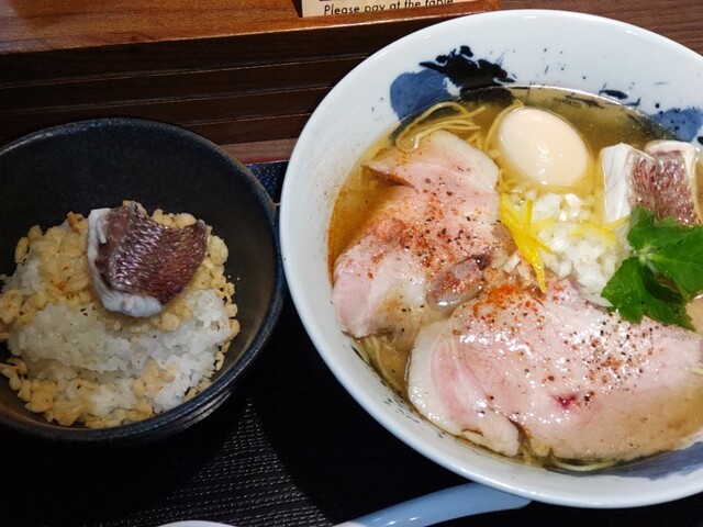 ハマグリとチャーシューが乗った贅沢潮ラーメンだ。全て美味かった、追い鯖わさび飯もピリッとして最高だった、毎回支払い後の帰り際に飴玉くれるのもほんわかして嬉しい。