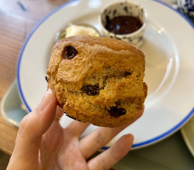 温めて出してくださり、これ単品でおいしすぎるので、たっぷりのクロテッドクリームとジャムを塗るタイミングを見失うほど。