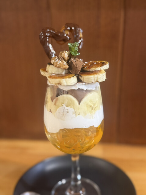 風味の良いラムゼリーとアーモンドクッキークランチ、チョコアイス、ブリュレされたバナナがパリパリで美味しかったです。