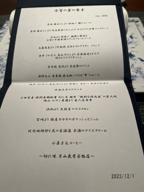 今回は白トリュフのコースということで、お値段も通常コースに比べすごいことになってました。