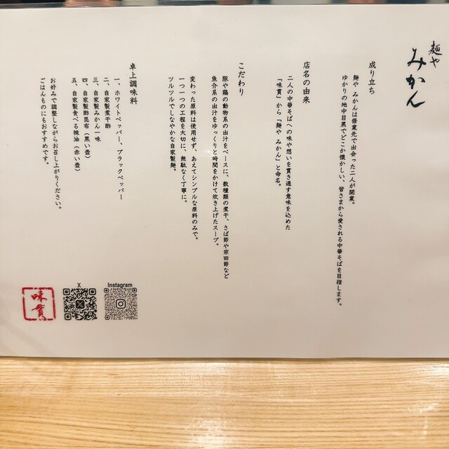 pm12:20今日は中目黒にある麺屋みかんさんにやって来ました。並びなく丁度2席空いてました。14席からなるこの字カウンターのお店です。