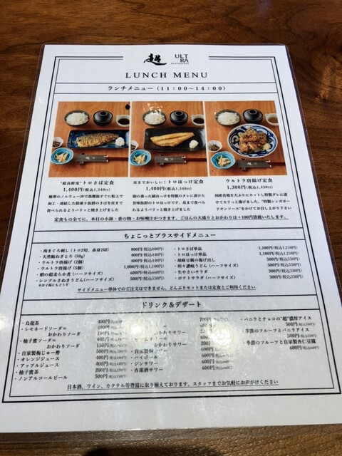 いわき駅前に用事があり前から気になっていた「超」(ウルトラ)に初めて伺いました。駐車場はペッペの共同駐車場を利用するのが楽だと思います。5種のお刺身定食2,200円をオーダー。どのネタも鮮度が良く美味しかったですが、ご飯が少なめなので男性は大盛がオススメ。他にも沢山メニューがあるのでまた伺いたいお店です。
