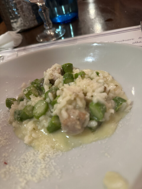 続いて、心温まるアスパラのリゾット。旬のアスパラガスの優しい甘みと香りが、お米一粒一粒にしっかりと染み込み、とろけるような食感とともに口いっぱいに広がります。クリーミーでありながらも重すぎず、前菜で目覚めた味覚を優しく包み込み、次へと繋がる心地よいブリッジとなるでしょう。
