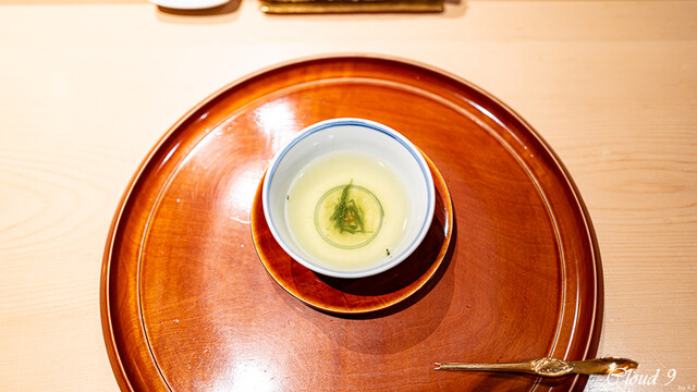 · 鱧、黄韮、新銀杏、煎り酒の餡
