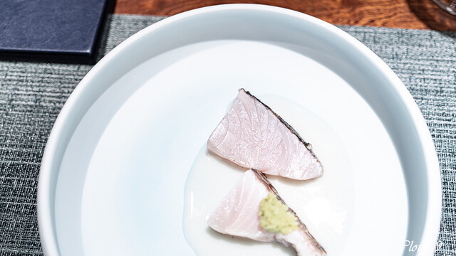 · 明石 田幸一より神経〆 鰆の藁焼き お米と中国甘酒のヴィネグレットソース