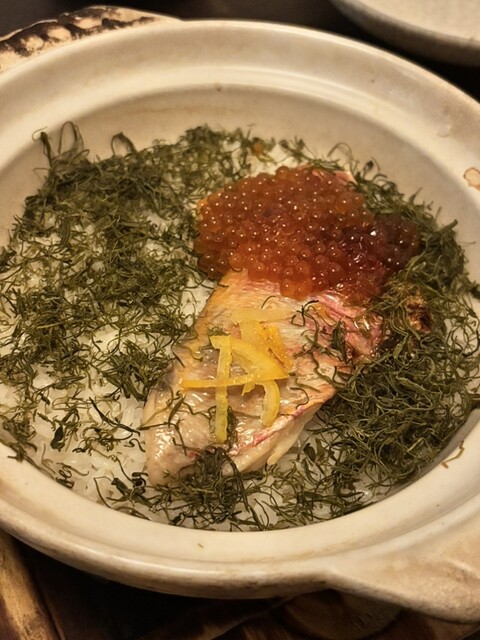 土鍋の金目鯛の炊き込みご飯、だし巻き玉子、カルパッチョ、コロッケを頼みました