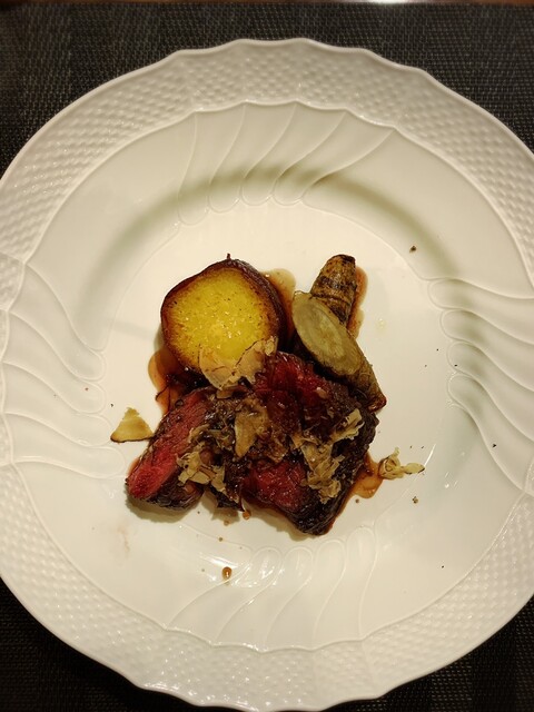 今回のコースでは、鹿肉のサラッとした味わいもサイコーでしたが、付け合わせのさつまいもがメチャうま〜!!!!でした。