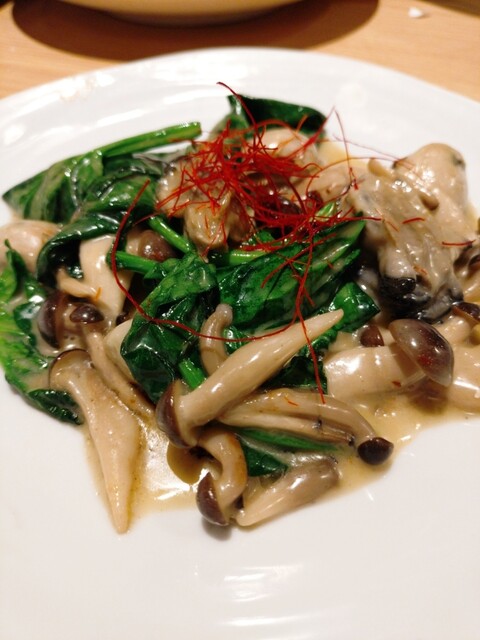 牡蠣だけではなくキノコとほうれん草もたっぷりでボリュームもありました⭐️