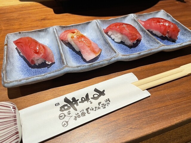 鯨の刺身にマグロのトロ、赤身、カツオの寿司