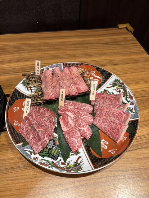 ④上肉3種盛り(上たん・上カルビ・上ハラミ) — サシも赤身も個性も花開く3部位。柔らかくて旨みも充分
