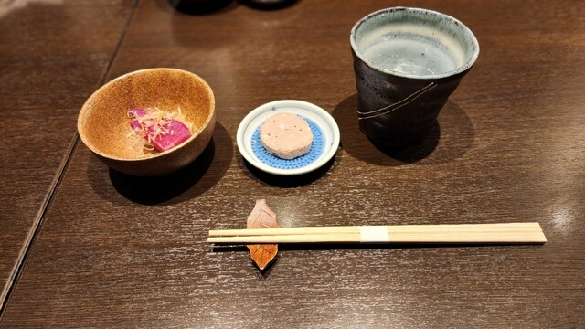 まずはお通し的な前菜が運ばれ時間を過ごします。