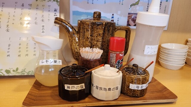 調味料にお塩も3種類用意されていて、色んなパターンを楽しみました。カットレモンではなくレモン汁が置いてあるのもフードロスを考慮した配慮で素晴らしいと思います。