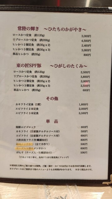 今回は東の匠SPFリブロースかつ定食3,800円を注文。