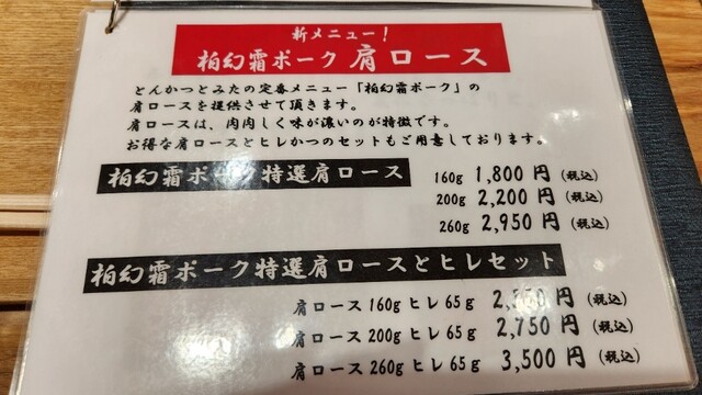 今回は新メニューの柏幻霜の特選肩ロース260g2,950円を注文。