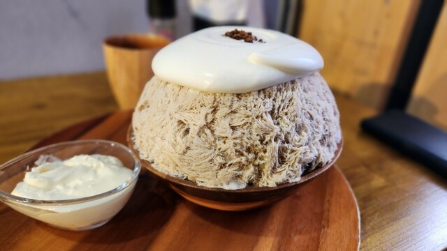 今回は、定番メニューの玉砂糖ミルク1,500円にミルクエスプーマと、クリームチーズをトッピング。