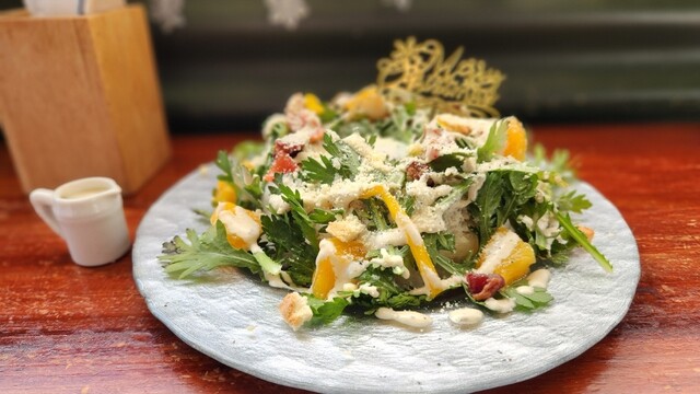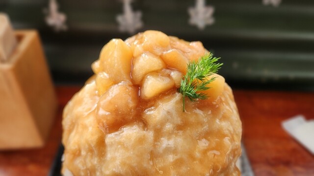 見た目がもうシーザーサラダのそれ! えっと、これはかき氷です、はいw トッピングに温泉玉子を乗せられるてっサイコー過ぎましたw フォークでいただくかき氷は初めてで、 サラダ感覚で罪悪感ゼロ。春菊が葉先までシャキシャキピーン! シーザードレッシングの塩味が良く合いますね。アクセントになっている紅まどんながひときわ際立つ美味しさでした! 毎日でも食べたいぐらい好みの一杯でした。