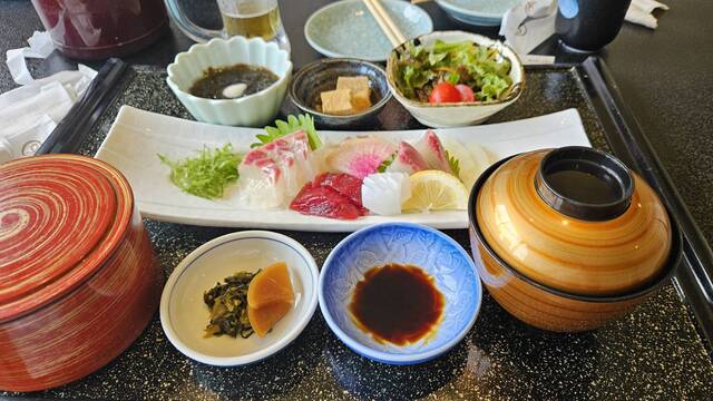 天草のイルカウォッチング船から戻るのが遅れたため、少し遅れてしまい、レストランの方には申し訳ありませんでした。天草で有名な醤油煮魚を注文しました。とても美味しかったです。台湾の煮魚とは違い、日本の甘い醤油味にも慣れていて、ご飯によく合いました。家族も握り寿司セットと刺身セットはどちらもとても新鮮だと言っていました。妹と私は天草産の牡蠣、シャコのフライ、ウナギのフライも注文しました。みんなとても美味しかったです。牡蠣はとても新鮮で、シャコは卵がしっかり入っていて、ウナギのフライは外はカリッと中はふわふわでした。子供たちに頼んだトマトパスタもとても美味しかったです。食事の途中で、車の警告灯が消えていなかったのですが、親切にスタッフの方が来て知らせてくれました。福心は私の知る限り、熊本各地に支店があるようですね。天草旅行で福心さんの料理を食べられて本当に良かったです。本当に幸せです。