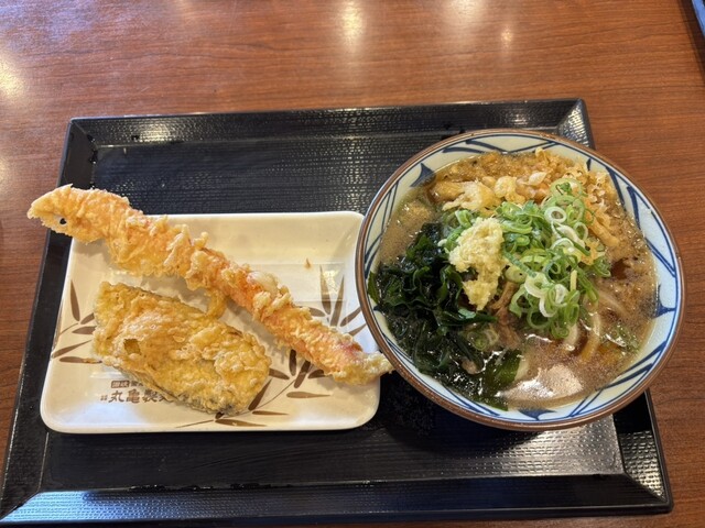 久々の丸亀製麺ですね。千葉県の丸亀製麺は、初めてです。今日は、かみさんが「わが町うどん」というキャンペーンを丸亀製麺でやっているとの事で、どうしても食べたいそうで来ました。千葉県の「わが町うどん」は、ゆずかおるあさり天と海苔の旨だしうどんでした。とても美味しそうに見えます。僕が注文したのは、焼きだし肉うどんでトッピングは、わかめ、青ネギ、おろししょうが、天かすです。トッピングを多くしたので、派手な味になるかなぁと思いましたが、実際は、肉の甘辛さが際立っておりとても美味しい品でした。