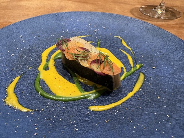 そして、いよいよ料理との対面です。まず、長崎県産と兵庫県産の魚料理は、熟成された魚の旨味が凝縮されており、口に入れた瞬間にその奥深さに感動しました。茨城県産の鴨肉は、信じられないほど柔らかく、噛むほどに溢れ出す肉汁と旨味が、至福のひとときへと誘います。