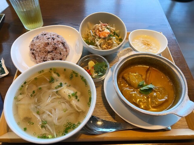 ③鶏肉の炊き込みご飯とフォーのランチセット(揚げ&蒸しの春巻とマンゴープリンが付きます)