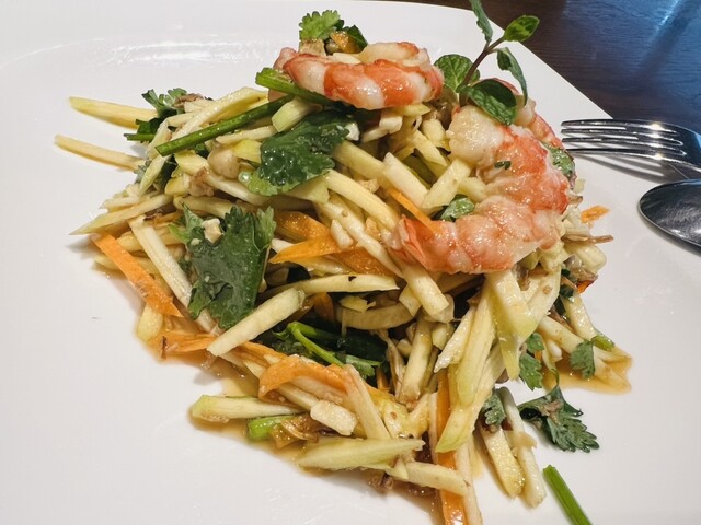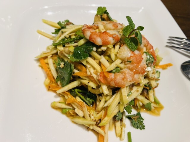 4月から東京に戻るので、この日が最後の博多ロータスパレス…定番の春巻盛合わせ(生、揚げ、蒸し)と青マンゴーのサラダ、蛤のクリームソースは初めていただきました‼️