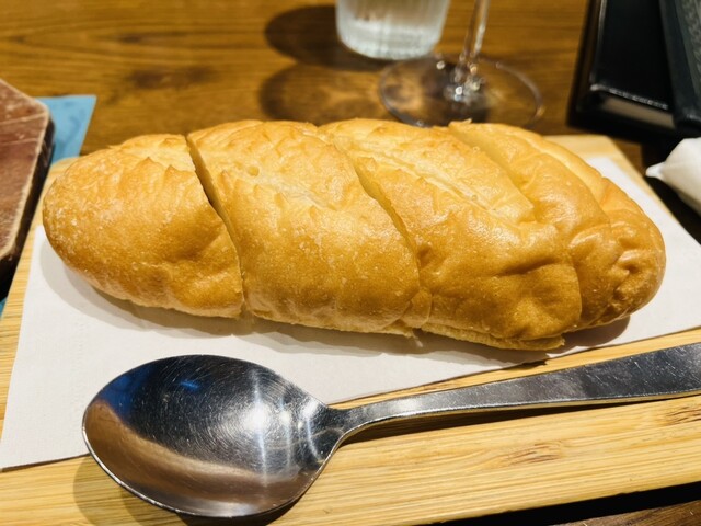 まずは生ビールで春巻、青マンゴーサラダをいただき、クリームソースはワインで…バインミーをたっぷりとソースと絡めて、これはワインと合いますね〜♪( ´θ`)