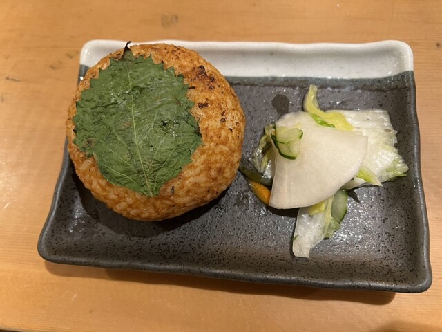 〆は仙台味噌のおにぎりを日本昔話に出てくるみたいに、まんまる大きく握ってもらいました!