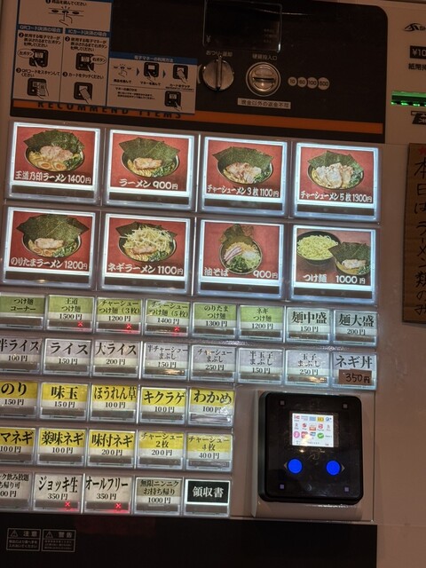 券売機で落ち着いて、チャーシュー麺(中盛)とライスを注文。