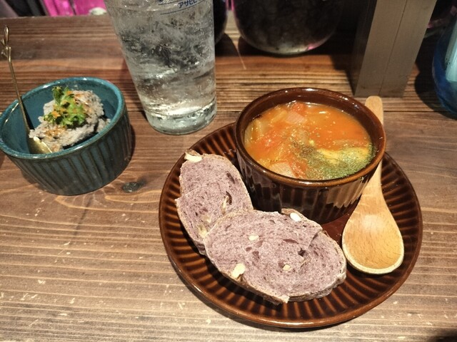 水茄子、ガーリックトースト、塩パンに、生ハムなど、トマトスープに、アサリの酒蒸し、ニョッキなど!ほんとに種類豊富な料理を食べさせてもらった感じです。お店はカウンターだけのこじんまりとしたお店だけど、ゆっくりのんびりしちゃいますね!