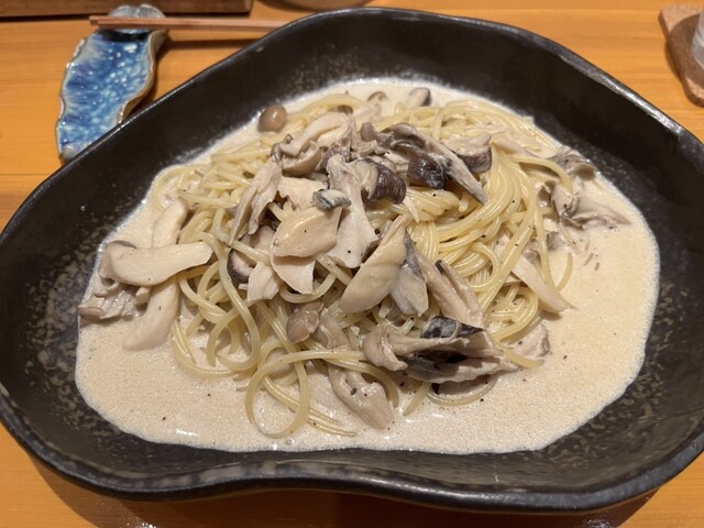 ちょっとイカ墨にもゆらめきながら、やはり今日も大好きな『木の子のクリームパスタ』